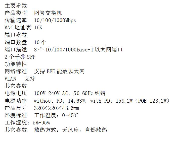 端口描述  :   8個(gè)10/100/1000Base-T以太網(wǎng)端口