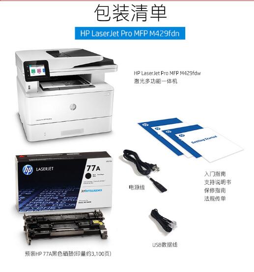 惠普(HP)打印機M429fdn a4黑白激光打印機復印掃描一體