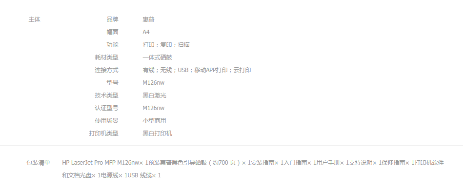 型號  :    M126nw