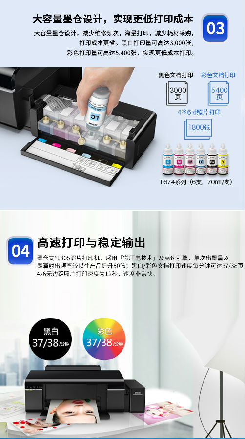 商品名稱  :   愛普生(EPSON)L805墨倉式6色照片打印機(jī)