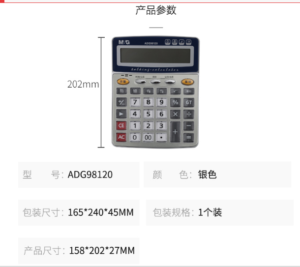 商品名稱  :   晨光(M&G)文具銀色金屬面板計算器