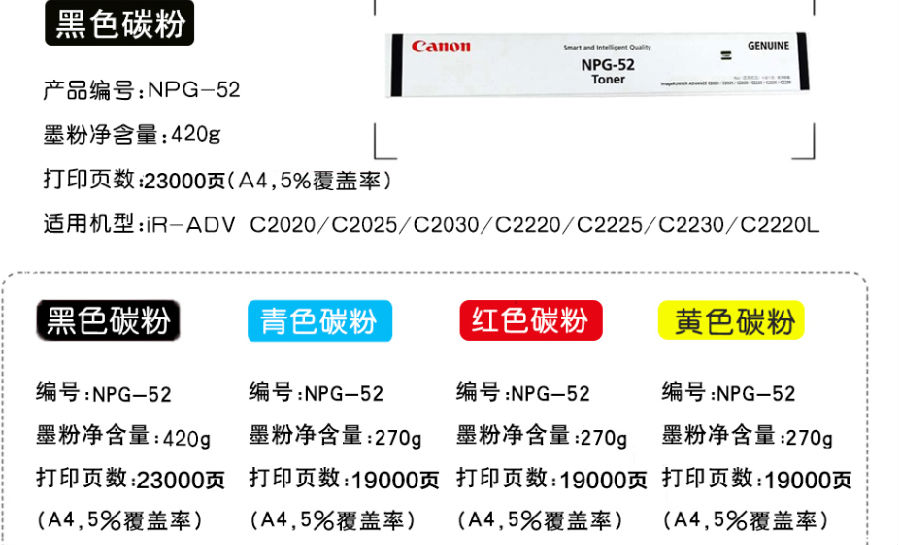 商品名稱  :   佳能(Canon)NPG-52粉盒系列原裝碳粉