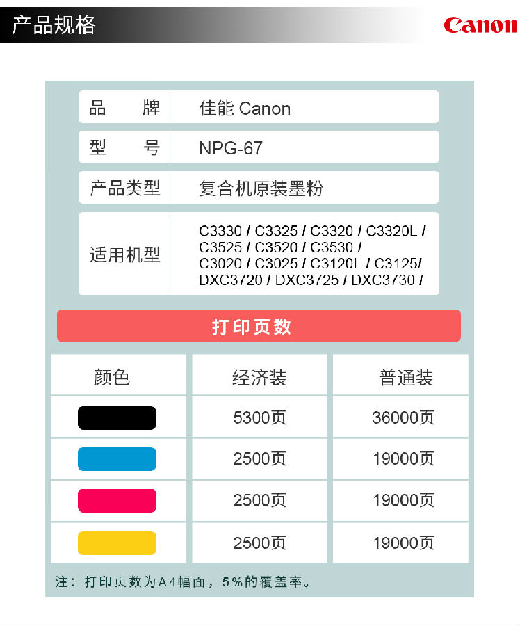 商品名稱  :   佳能(Canon)NPG-67原裝粉盒