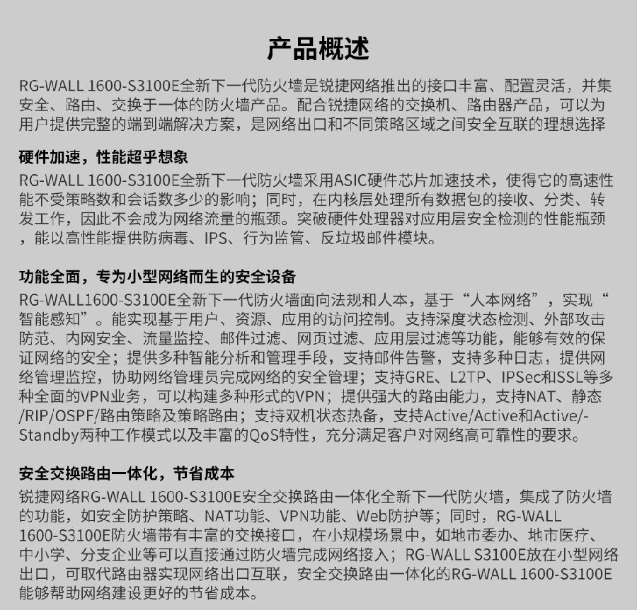 商品名稱  :   銳捷(Ruijie)RG-WALL1600-S3200下一代防火墻
