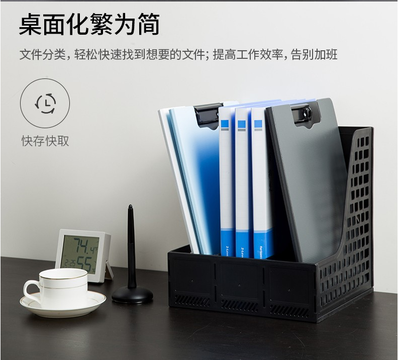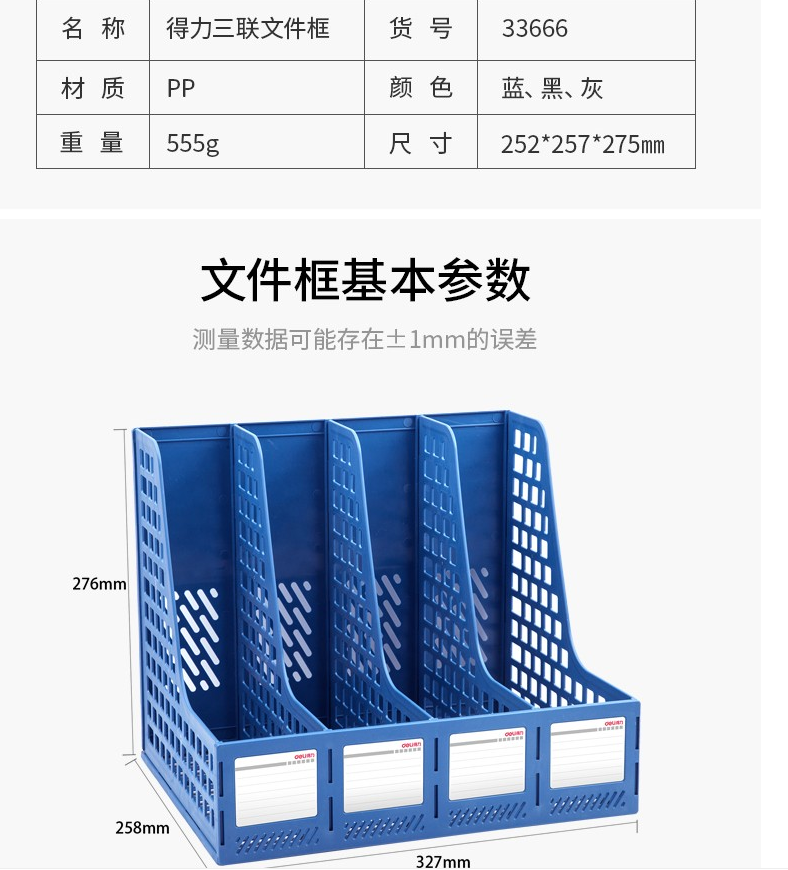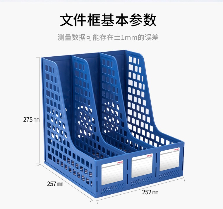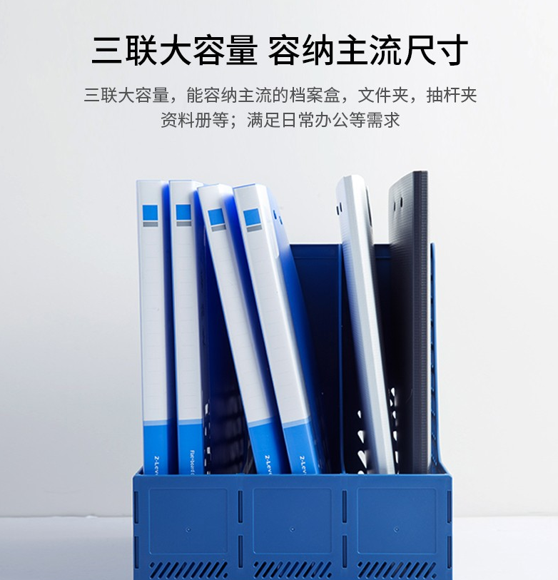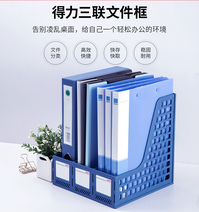 得力文件框 桌上文件夾 收納盒 資料夾文件架 書桌多層書立書架 檔案收納文件筐 辦公用品 學(xué)生文具 藍(lán)色 三聯(lián)