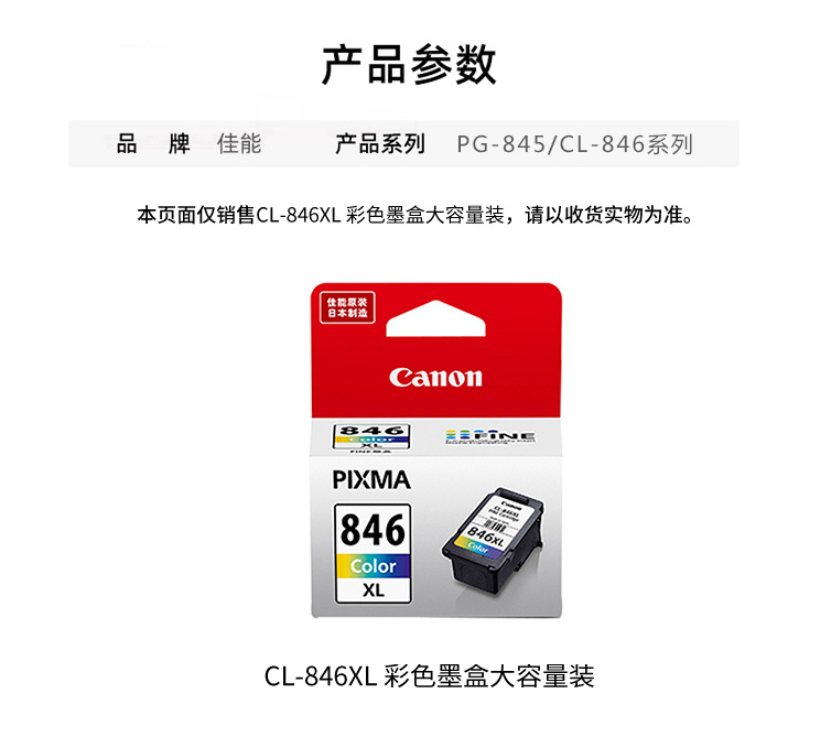 商品名稱  :   佳能(Canon)CL-846XL原裝 噴墨盒
