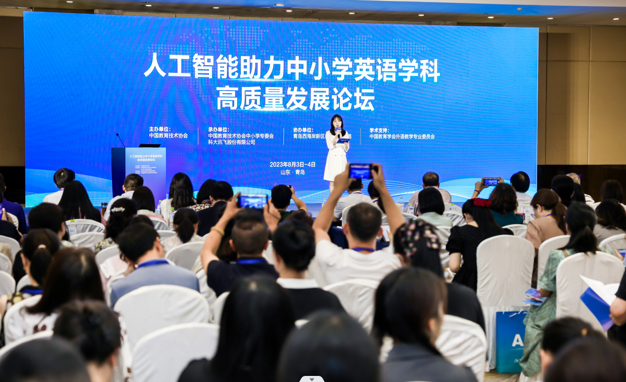 為貫徹二十大報(bào)告中提出的“推進(jìn)教育數(shù)字化”會議精神,落實(shí)《教師數(shù)字素養(yǎng)》標(biāo)準(zhǔn),8月3日至4日,由中國教育技術(shù)協(xié)會主辦、中國教育技術(shù)協(xié)會中小學(xué)專業(yè)委員會及科大訊飛股份有限公司承辦、青島西海岸新區(qū)教育和體育局協(xié)辦的人工智能助力中小學(xué)英語學(xué)科高質(zhì)量發(fā)展論壇在青島隆重舉行,本次論壇還特別邀請到中國教育學(xué)會外語教學(xué)專業(yè)委員會作為學(xué)術(shù)指導(dǎo)單位,旨在與全國各地英語骨干教師一起共研英語數(shù)字化教學(xué)。來自全國各地的近三百名行業(yè)專家、教研員、教師及相關(guān)從業(yè)者共同參與了活動。